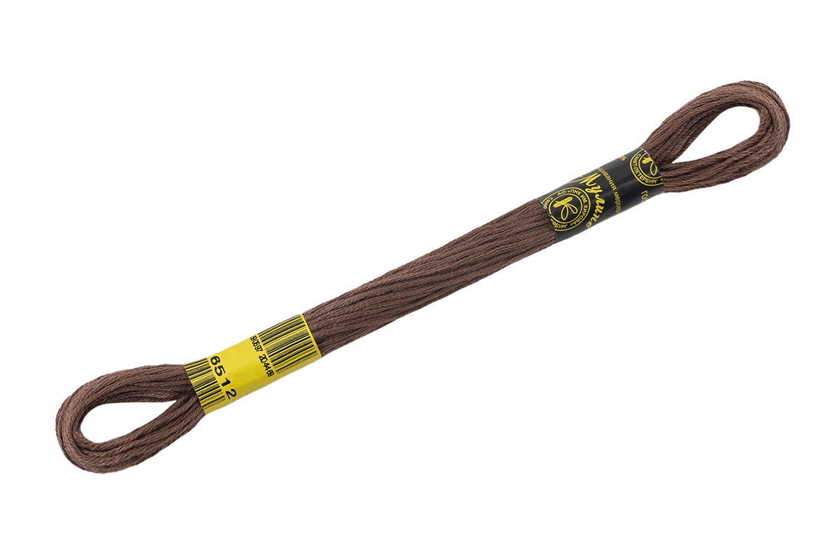 Нитки для вышивания " ПНК им. Кирова" мулине 100% мерсеризованный хлопок 8 м №6512 т. коричневый