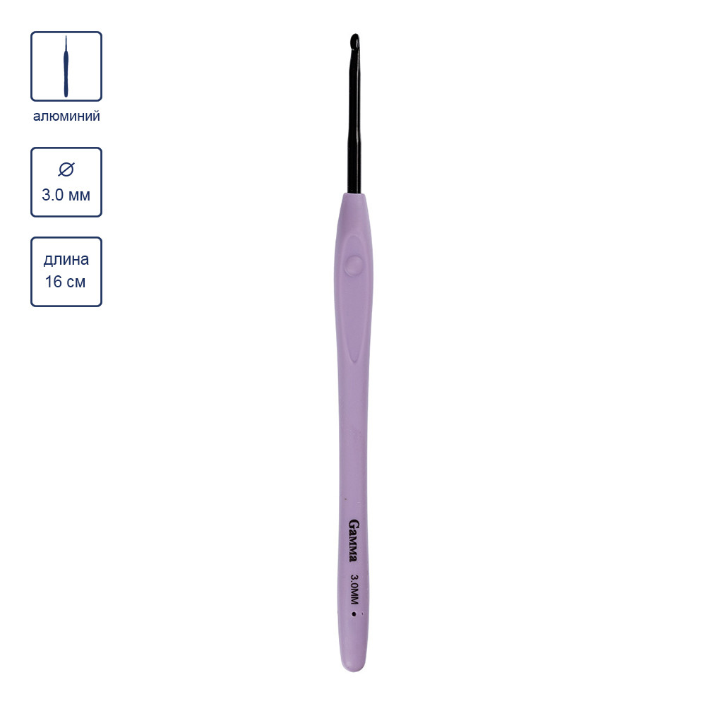 Для вязания " Gamma" RH- BL крючок с прорезин. ручкой алюминий d 3. 0 мм 16 см в блистере .