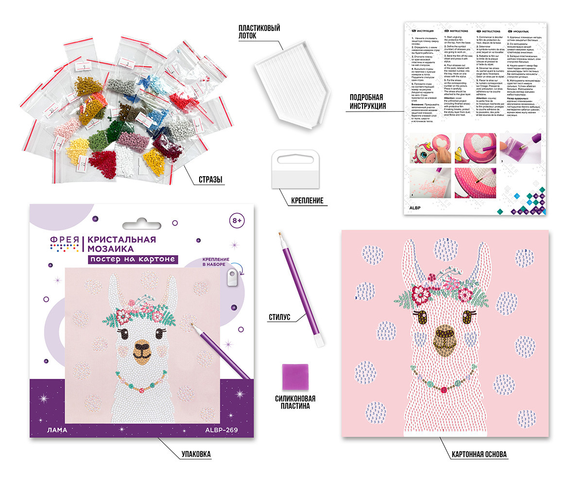 Набор по изготовлению постера на картоне в технике " Кристальная/ алмазная мозаика". Выполнение работы не требует специальных навыков, выкладывать постер очень легко и быстро. Стразы наклеиваются поверх изображения со схемой на уже нанесенный клеевой слой. Основа из плотного картона не деформируется и не образует заломов. Готовый постер не нуждается в раме, его сразу можно поставить на полку или повесить на стену, при помощи специального крепления, входящего в набор. Картина станет ярким и оригинальным украшением интерьера! В набор ТМ ФРЕЯ " Кристальная мозаика" входит:- цветная схема, напечатанная на картоне, с клеевым слоем и защитной пленкой,- круглые стразы: 6 цветов, с запасом 20%,- стилус и восковая пластина,- лоток,- крепление для подвешивания картины на стену. Тип выкладки: частичная. Уровень сложности: 2 из 3. Размер готового изделия: 30х30 см. Размер упаковки: 32х34х1. 5 см. Рекомендуемый возраст: от 8 лет. Сообщить о неточности в описании